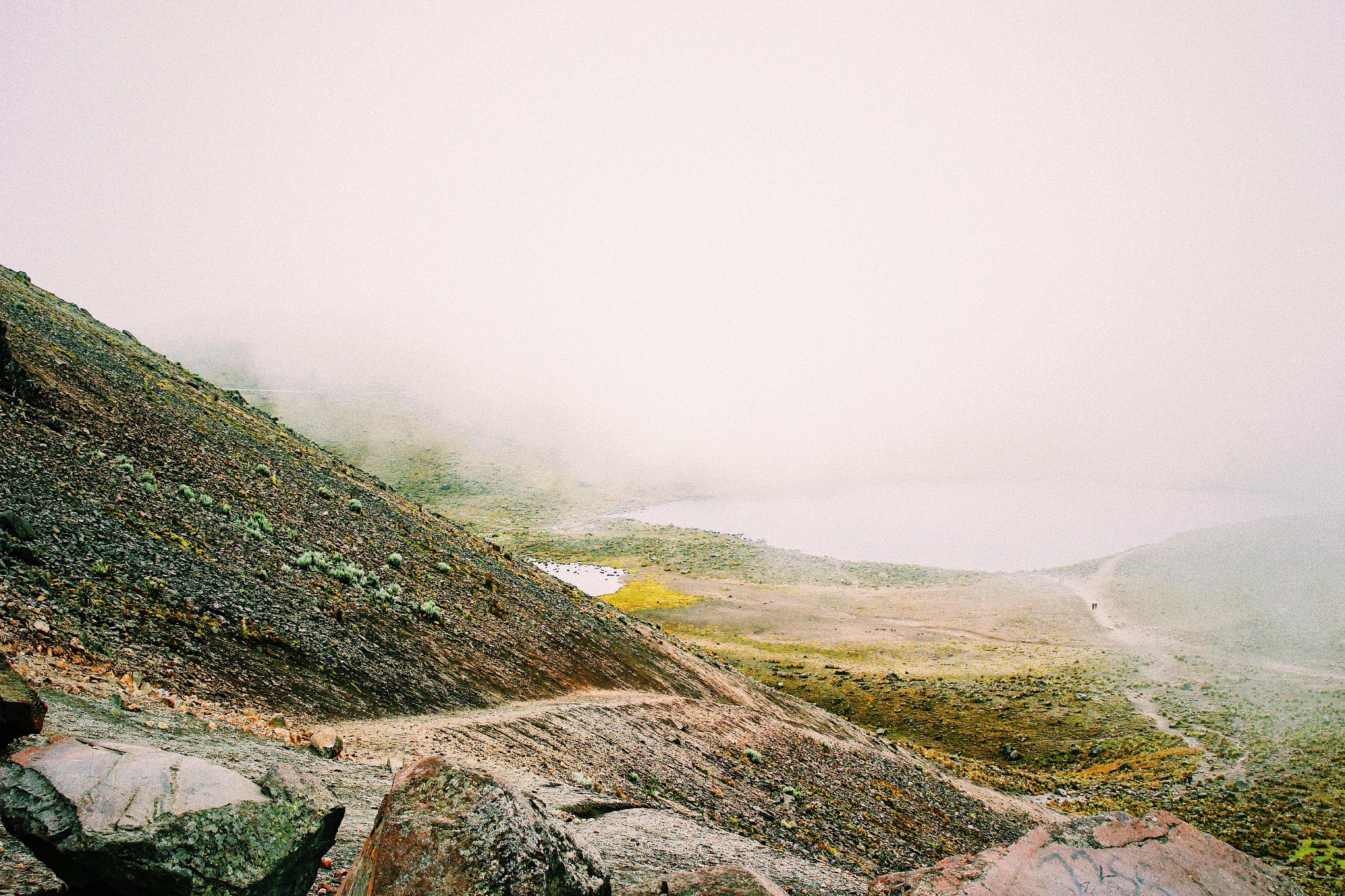 Aided by the wings of the winds, our motor ducked into the mountain. Temperature dropped instantly. Toluca was surrounded with unpredictable roars from the sky. I tried to look down to the inactive volcano lagoon. There was nothing. I only saw a teeny line of traveller trekking through the rocks.